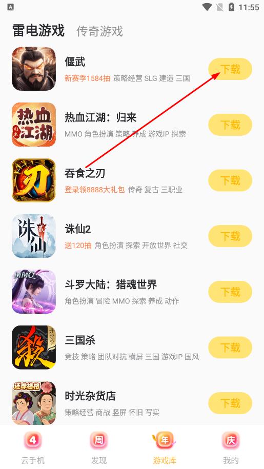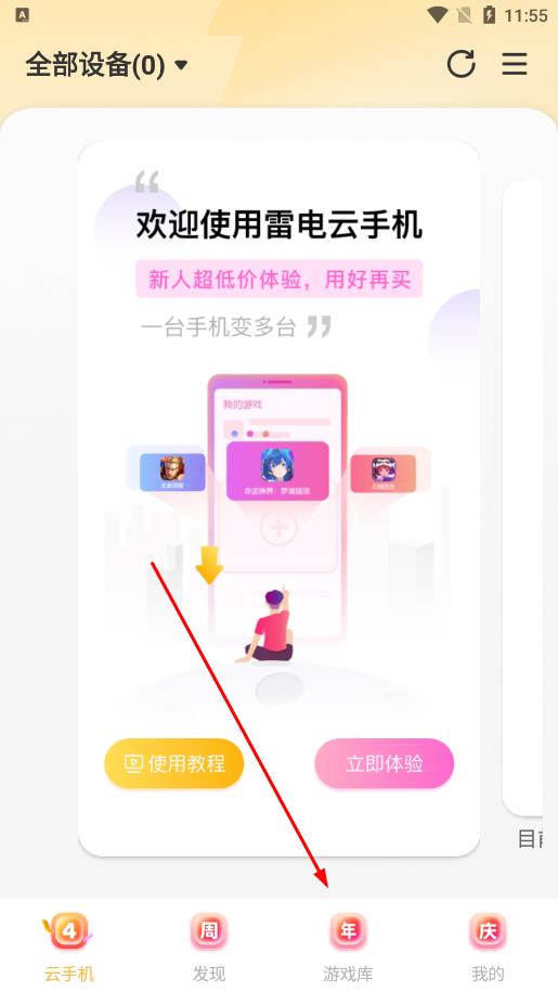 1、打开雷电云手机App,点击底部导航栏中的游戏库选项。