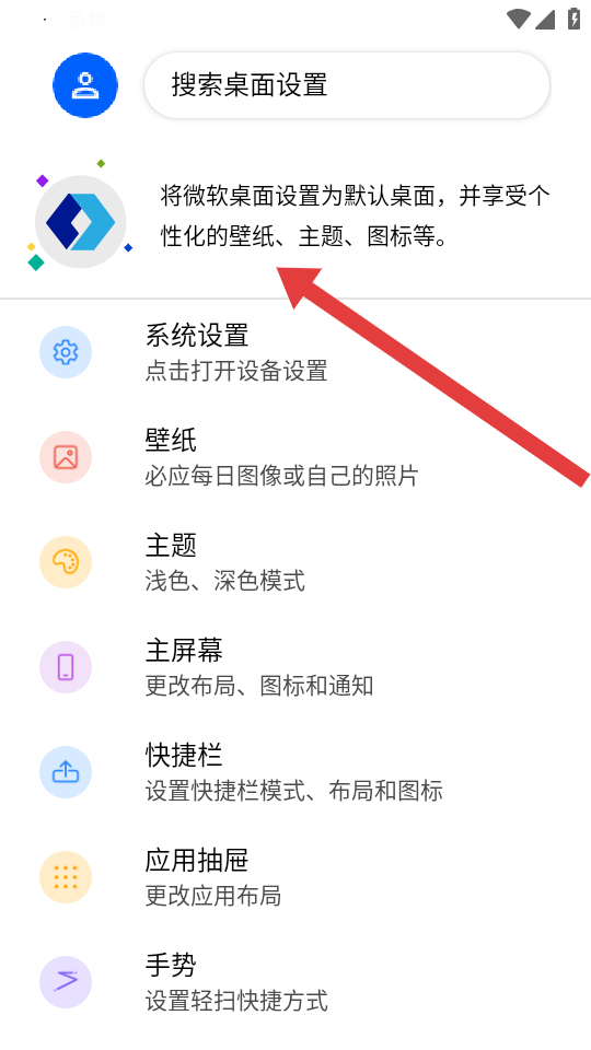 3、在桌面设置页面,点击将微软桌面设置为默认桌面选项,触发默认桌面设置流程。