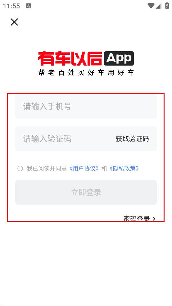 4、完成上述操作后,点击立即登录按钮,完成有车以后APP的登录操作,之后可使用APP的各项功能,如查看车系详情等。