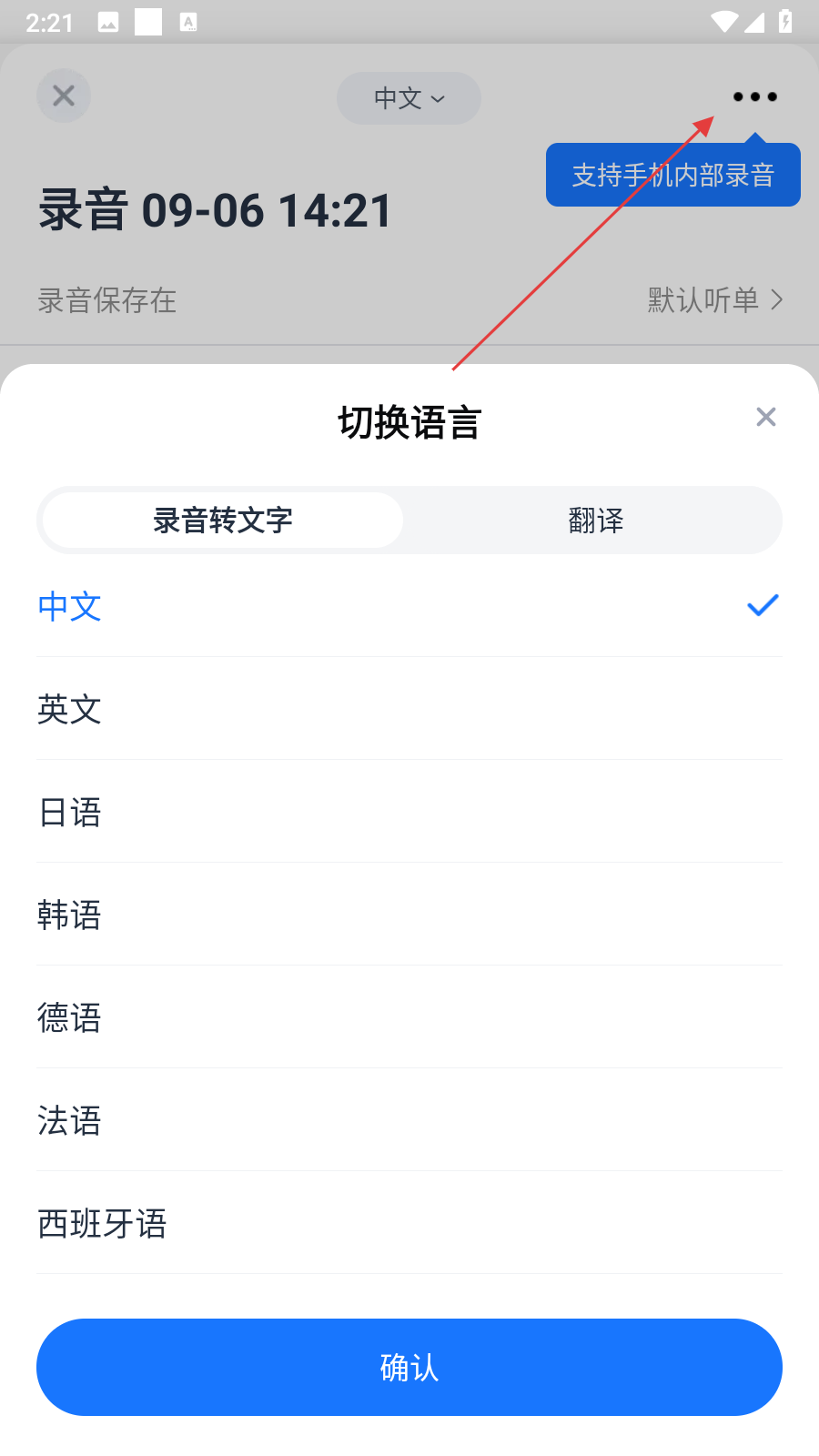 录音转文字:支持将录音转为文字,音频文稿一起存。