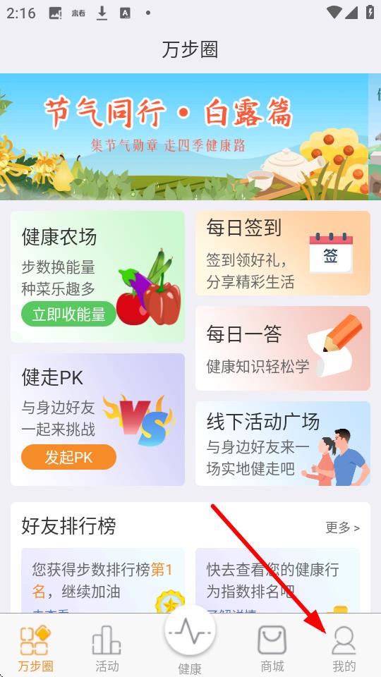 1、打开万步健康App,点击底部导航栏中的我的选项,进入个人页面。