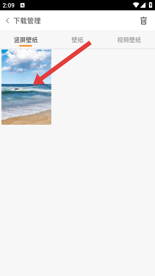 3、在下载管理页面的竖屏壁纸标签下,点击已下载的目标壁纸,进入壁纸详情的页面。