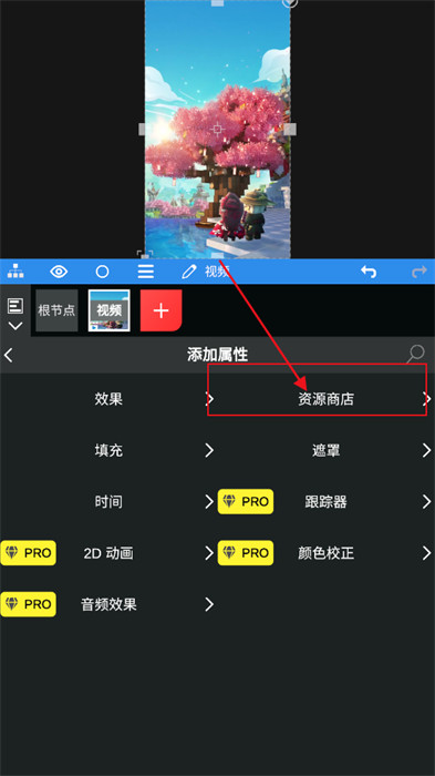 5、继续跳转弹窗,找到【资源商店】,这里包含了各种滤镜、转场,非常全面;