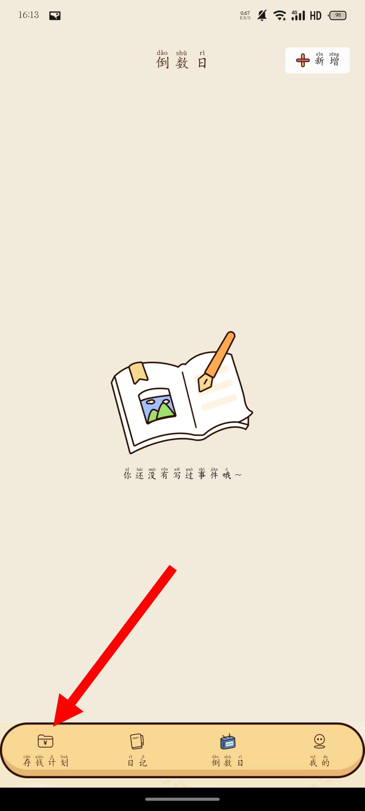 2、日常记账结合附加服务:每次消费或收入后,打开软件选对应场景记账,若当天有重要事项,同步在倒数日添加,记录账单时可写下心情日记,确保收支记录完整。