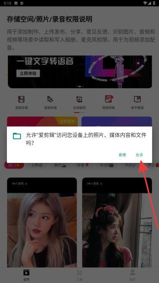 2、首次使用需授予访问设备照片、媒体内容和文件的权限,点击允许。