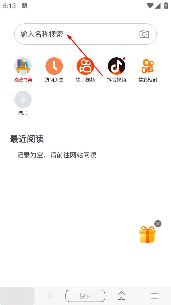 1、打开该搜索类软件,在主界面的搜索框中,输入想要查找的内容相关关键词,比如输入“视频”,查看相关搜索建议。
