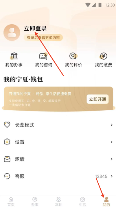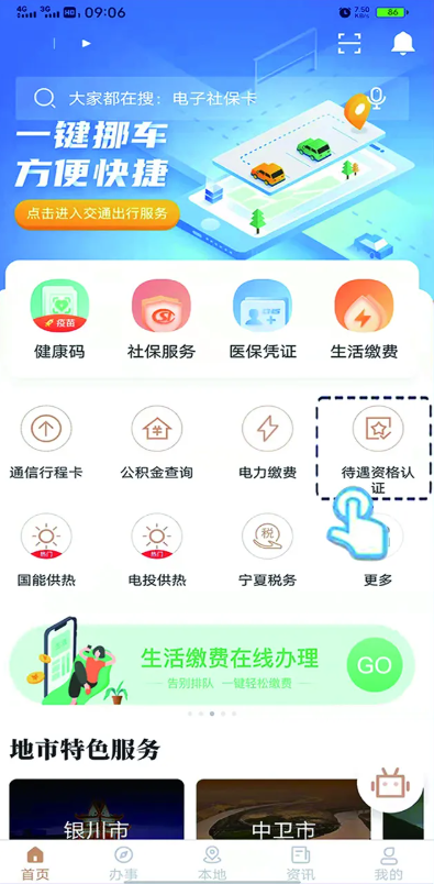 1.打开“我的宁夏”APP,使用手机号注册并完成实名认证。