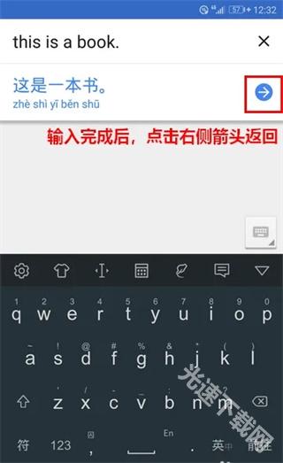 3、随后,输入要翻译的文本。在这里需要提醒大家的是,谷歌翻译支持实时同步翻译。也就是说,你每输入一个单词,它会立刻给出相应的中文汉字。
