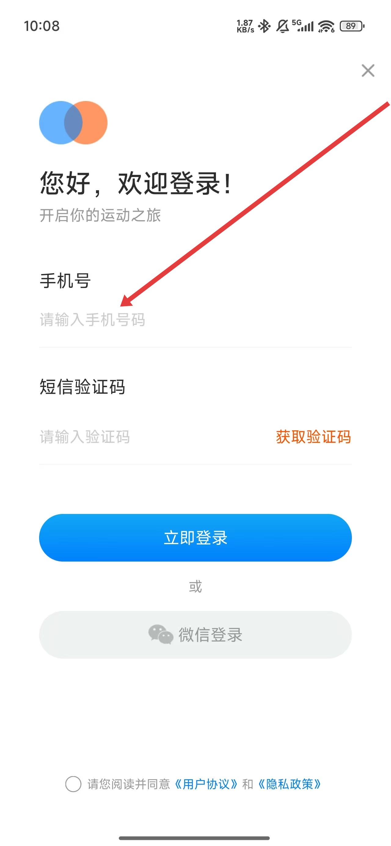 4、跳转到登录页中,点击输入框填写手机号获取验证码后完成登录操作。