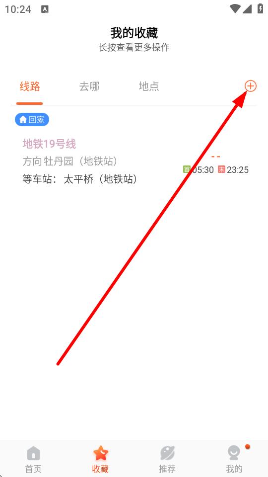 1、打开掌上公交App,进入首页,点击底部导航栏中的收藏选项。