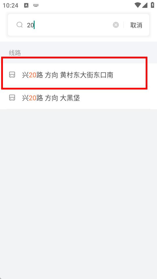 3、在搜索框中输入想要收藏的公交线路编号,点击搜索结果中对应的线路。