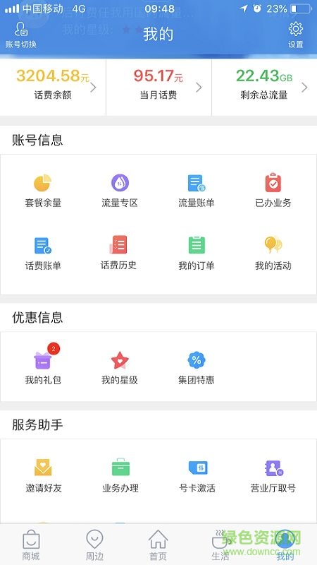 上海移动和你app是由上海移动官方推出的一款业务办理软件,用户可以在线查看个人账单消费信息,充值缴费支持多种支付方式,在线购买流量、更变套餐方便快捷,还可以查看最新优惠活动,欢迎来绿色资源网下载!