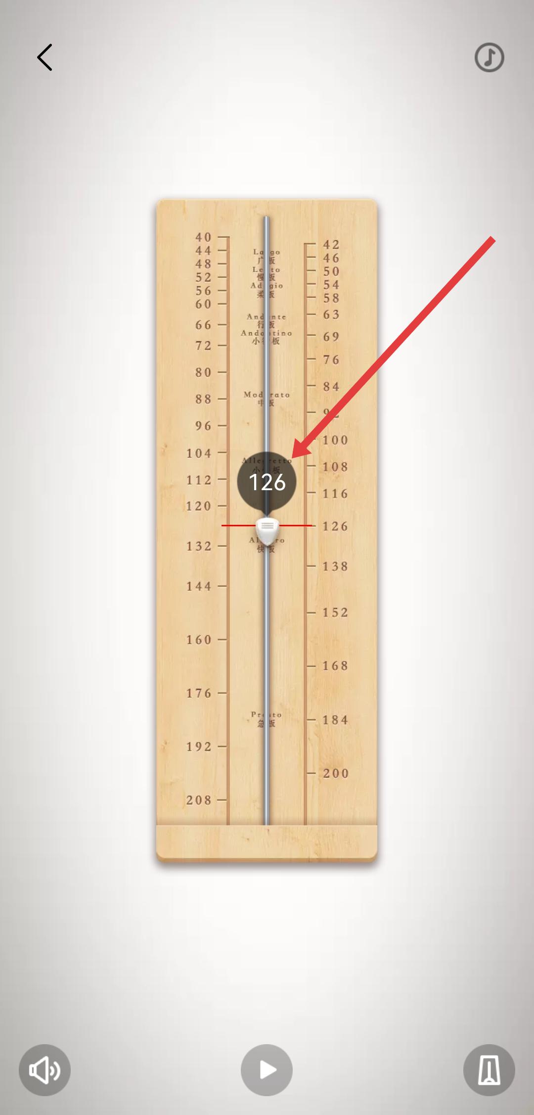 2、在节拍器界面,通过滑动或点击刻度区域设置节拍速度数值,调整至适合的节奏快慢。
