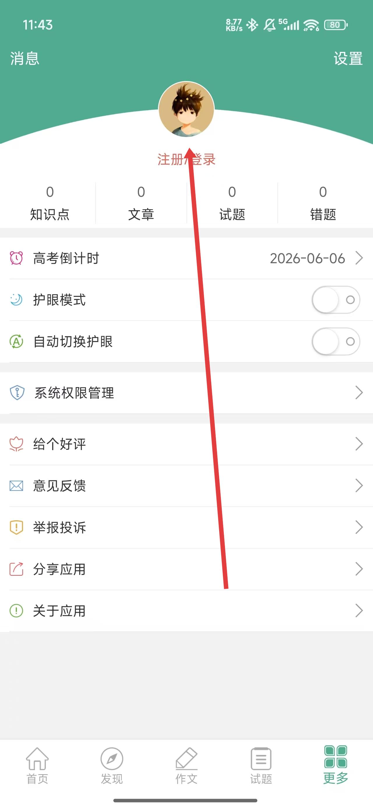 1、在高考语文通首页中,点击底部更多按钮可进入到我的主页。