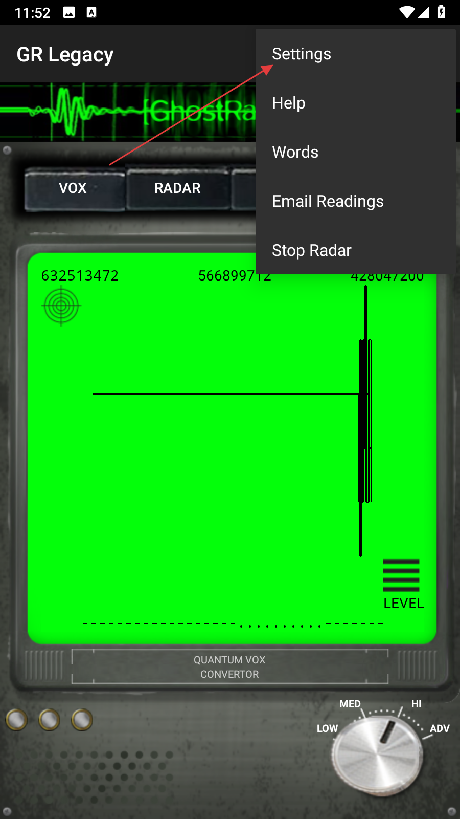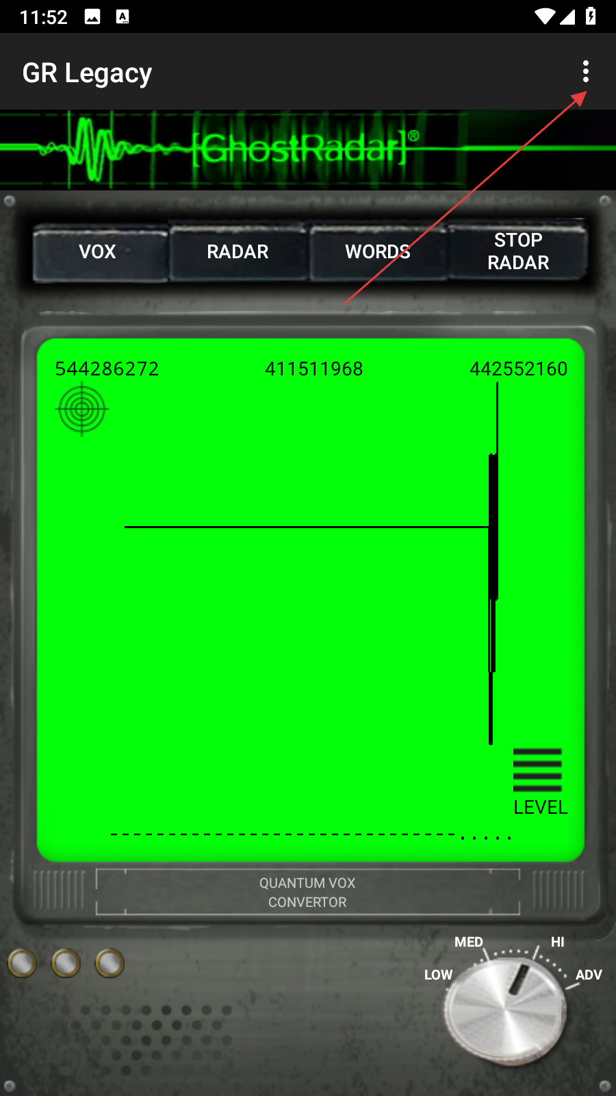 就是你打开后,按radar就能看见一个雷达,有光点,颜色代表信号的强度,红色信号最强,再来是黄色、紧接着是绿色,而兰色的信号则是最微弱的,就是有光点就说明周围可能有ghostwords,就是偶然冒出的几个单词,就是ghost想说的话。