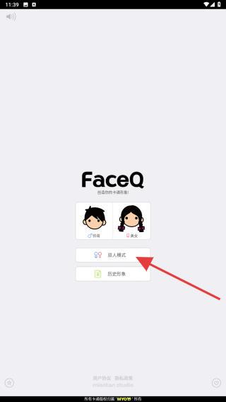 1、启动myotee脸萌APP,进入到首页内,点击双人模式的功能按钮。