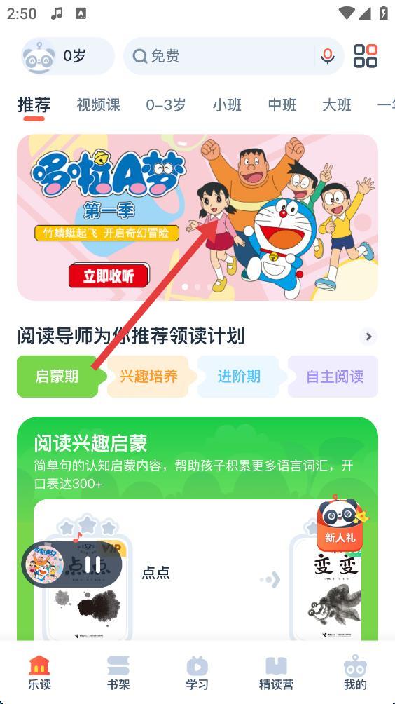 根据A~E进行5大阅读力爬梯书库,包含有声书、丛书、电子书等少儿专属书库,覆盖0-12岁全年龄