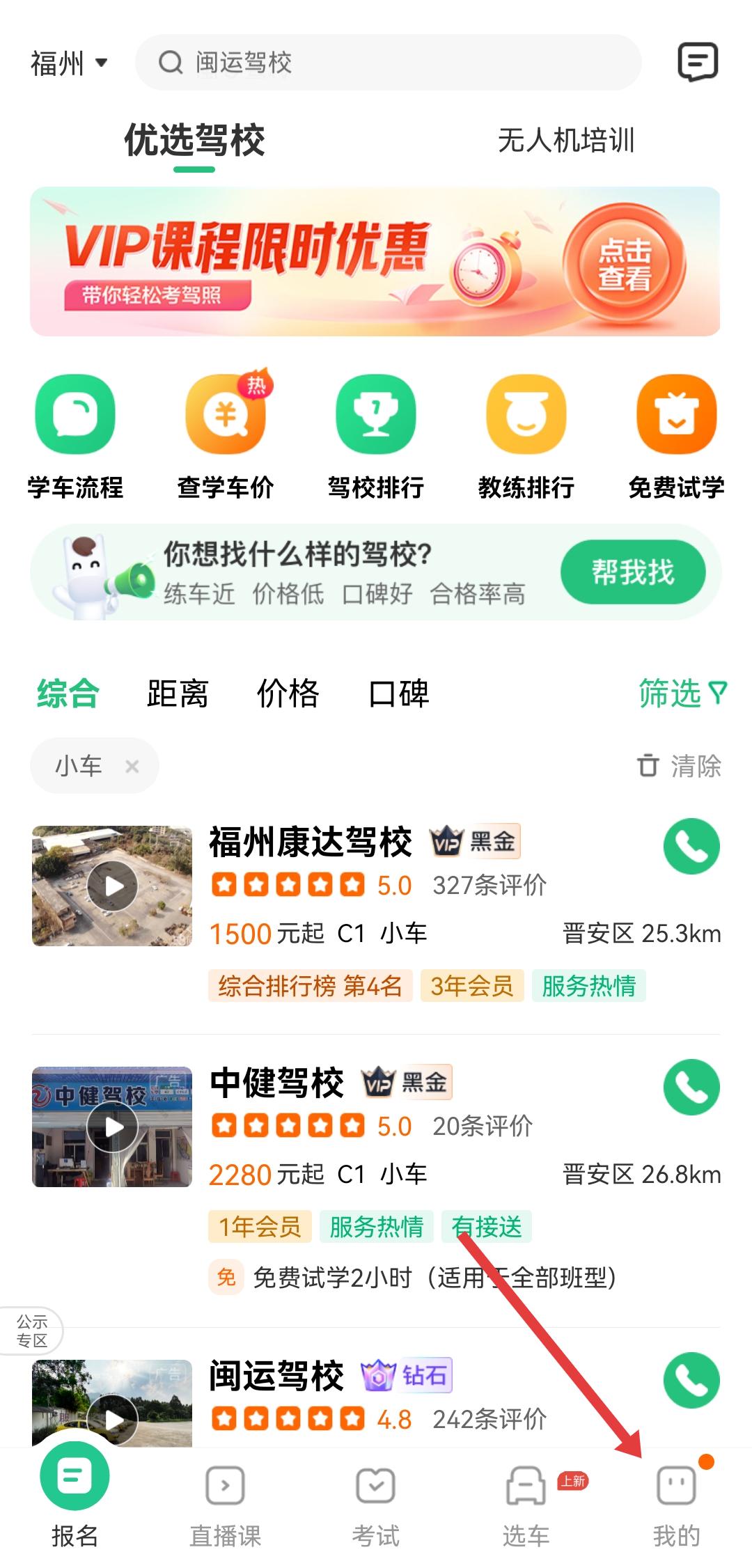 1、打开驾校一点通APP,点击底部导航栏最右侧的我的,进入个人中心页面。