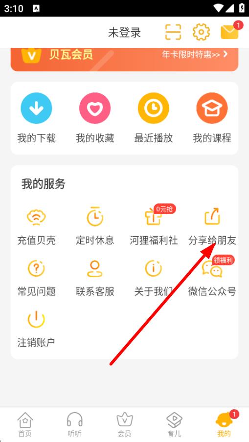 2、在个人页面的我的服务板块里,找到并点击分享给朋友选项。