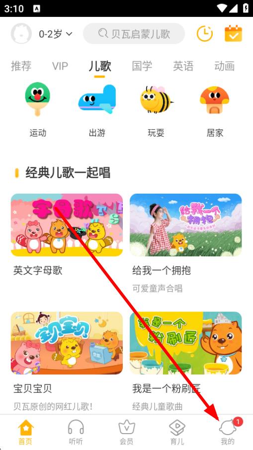 1、打开贝瓦儿歌App,点击底部导航栏中的我的进入个人页面。