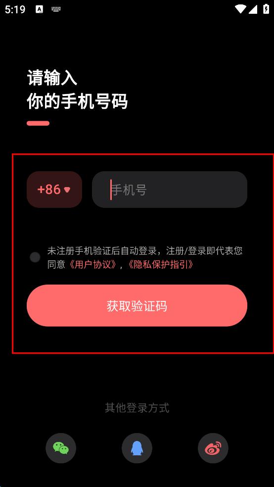 3、在手机号码输入页面,输入自己的手机号码,然后点击“获取验证码”按钮,等待接收短信验证码。