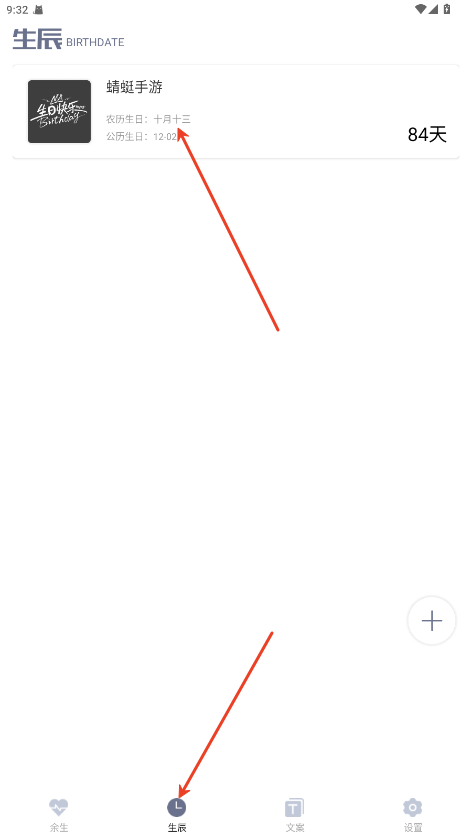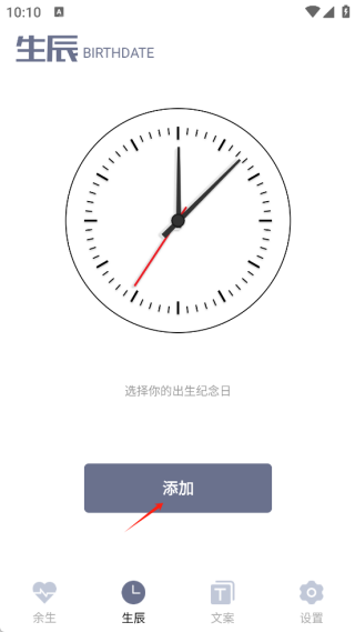 1.打开余生App主页面,在页面底端找到生辰并点击