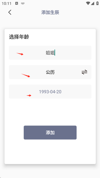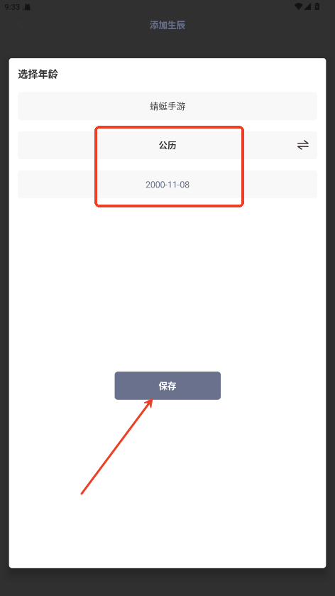 3.填好家人的昵称和生日日期,有农历和公历选择