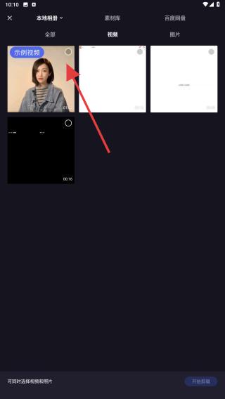 3、进入本地相册,选中要编辑的视频/图片素材。