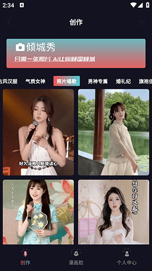 倾城秀是一款功能实用的视频制作软件,拥有各类丰富的视频模板,为用户打造便捷的AI视频创作体验,用户在操作时,可直接拍摄照片或上传视频,借助软件制作不同内容的AI视频,且软件提供多样编辑方式,支持对照片、视频进行美颜与剪辑,所有操作方式均免费开放,让用户无需额外付费,就能轻松完成视频创作,满足日常视频制作需求。