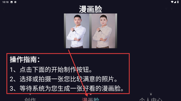 2、点击底部漫画脸选项,观察漫画脸的操作指南。