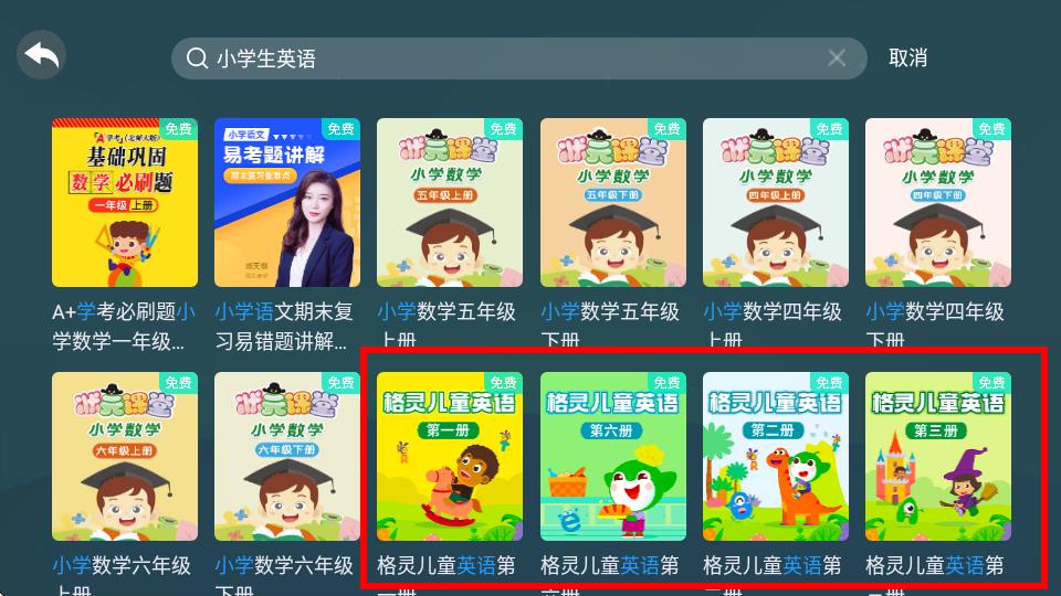 3、在搜索结果中找到感兴趣的课程,例如格灵儿童英语系列,点击课程封面。
