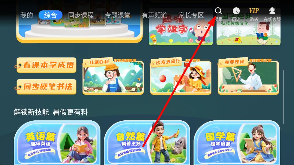 1、打开同步小学课堂APP进入主界面,点击右上方的搜索图标。