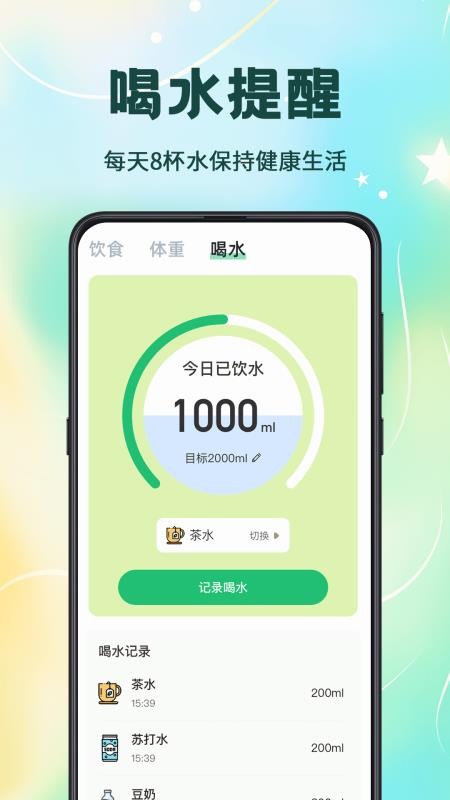 2、软件的喝水提醒功能可以助力用户养成喝水习惯,确保身体水分平衡。