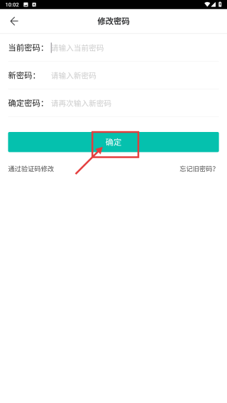 4、在修改密码页面,输入当前密码、新密码,再次输入新密码确认后,点击确定按钮,完成密码修改。