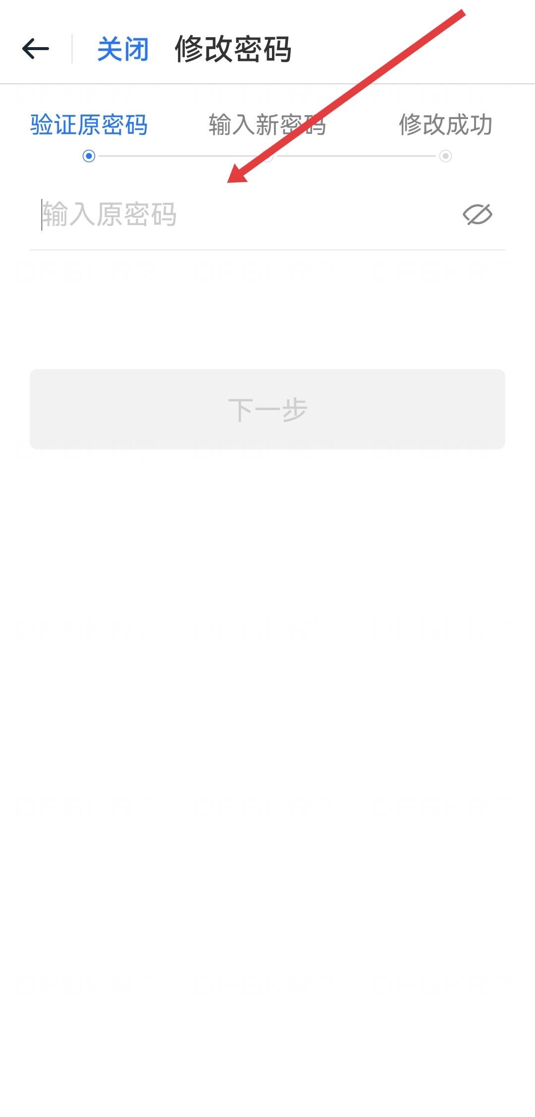 3、在修改密码的验证原密码步骤,在输入框中输入当前的登录密码,完成原密码验证。