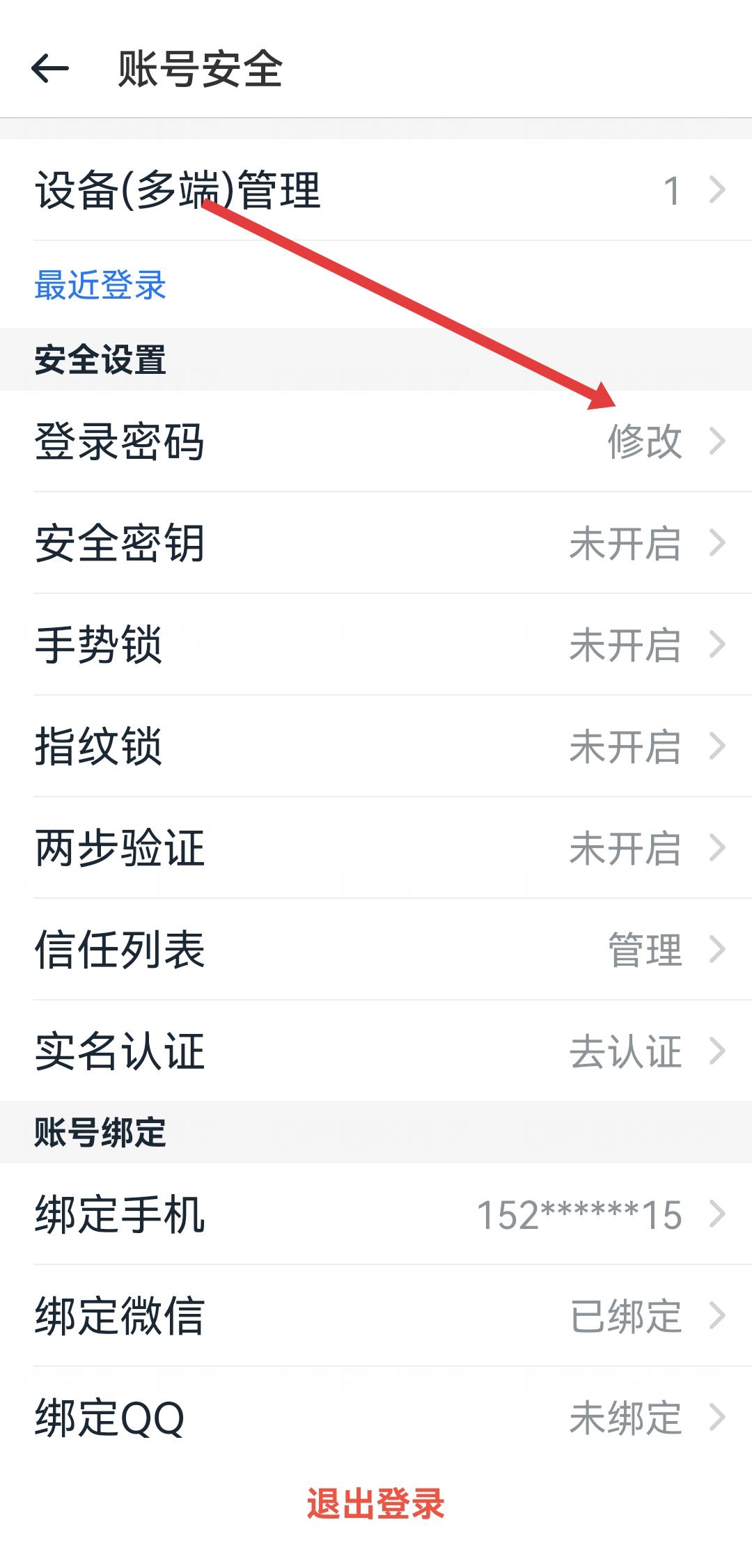 2、在账号安全页面中,找到登录密码选项,点击其右侧的修改按钮,进入修改密码流程。