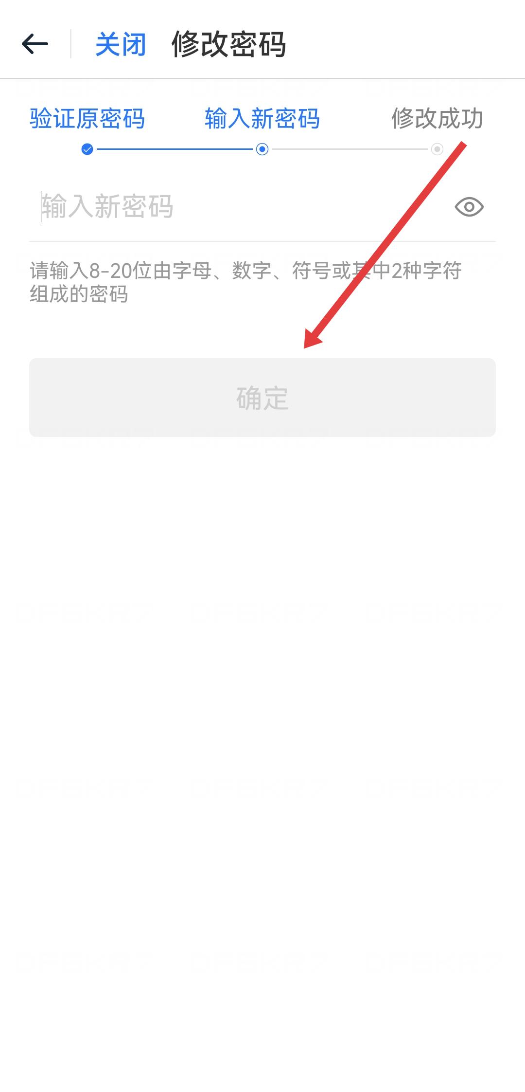 4、验证原密码通过后,进入输入新密码步骤,输入新密码,然后点击确定按钮,完成密码修改。