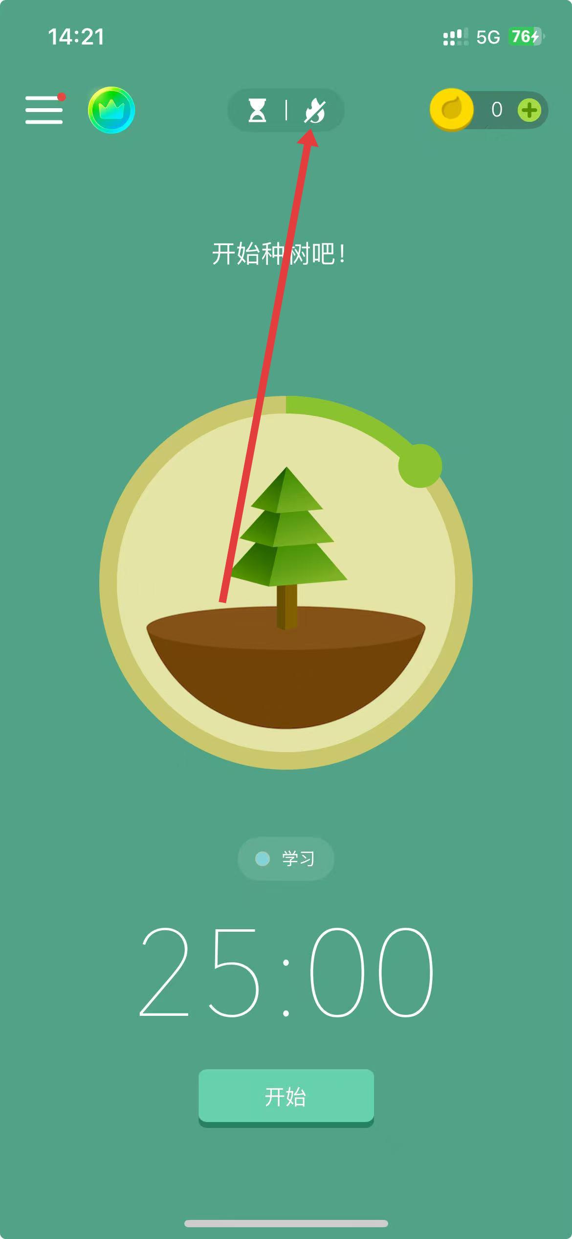 1、点击主界面上方沙漏和火焰图标,进入种树设置界面。