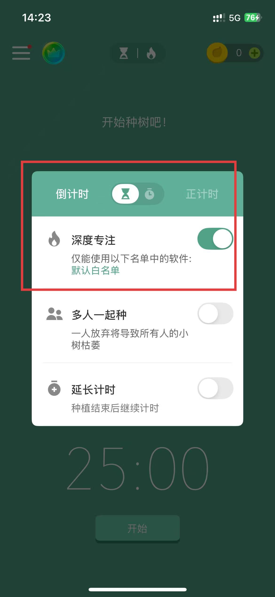 4、完成设置后,点击下方开始按钮,即可开启专注模式。