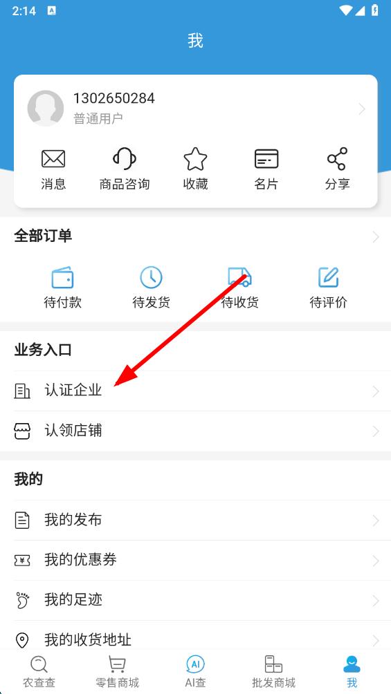 2、在个人界面中,找到业务入口板块,点击其中的认证企业选项,进入企业认证页面。