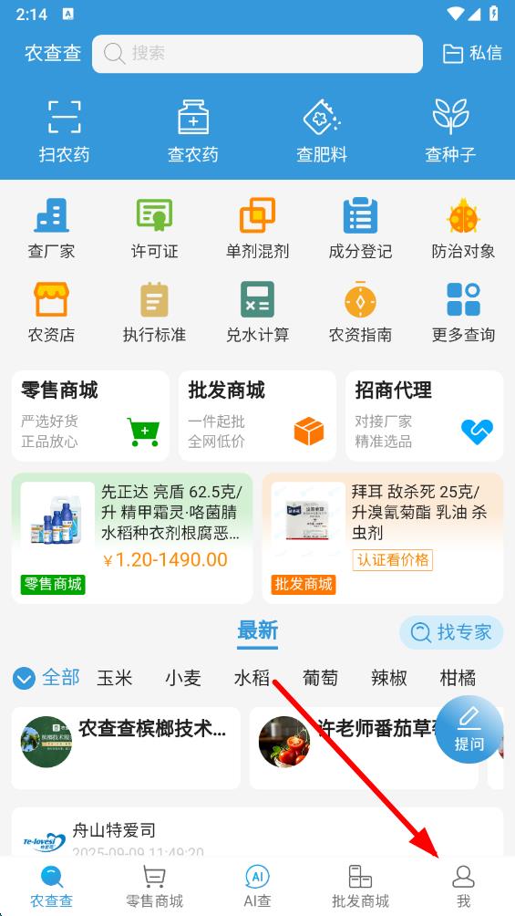 1、打开农查查app,进入主界面后,点击底部导航栏最右侧的我选项,进入个人界面。