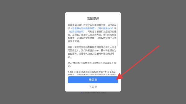 1、第一次打开时会弹出温馨提示弹窗,含用户协议、权限说明,点击我同意按钮,完成协议确认与基础权限授权。