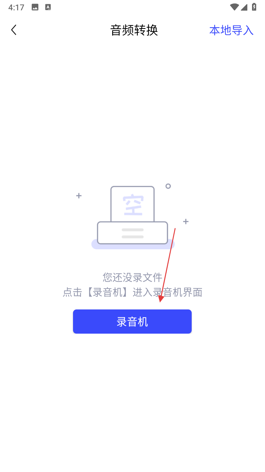 2、点击页面中的录音机按钮,进入录音机界面。