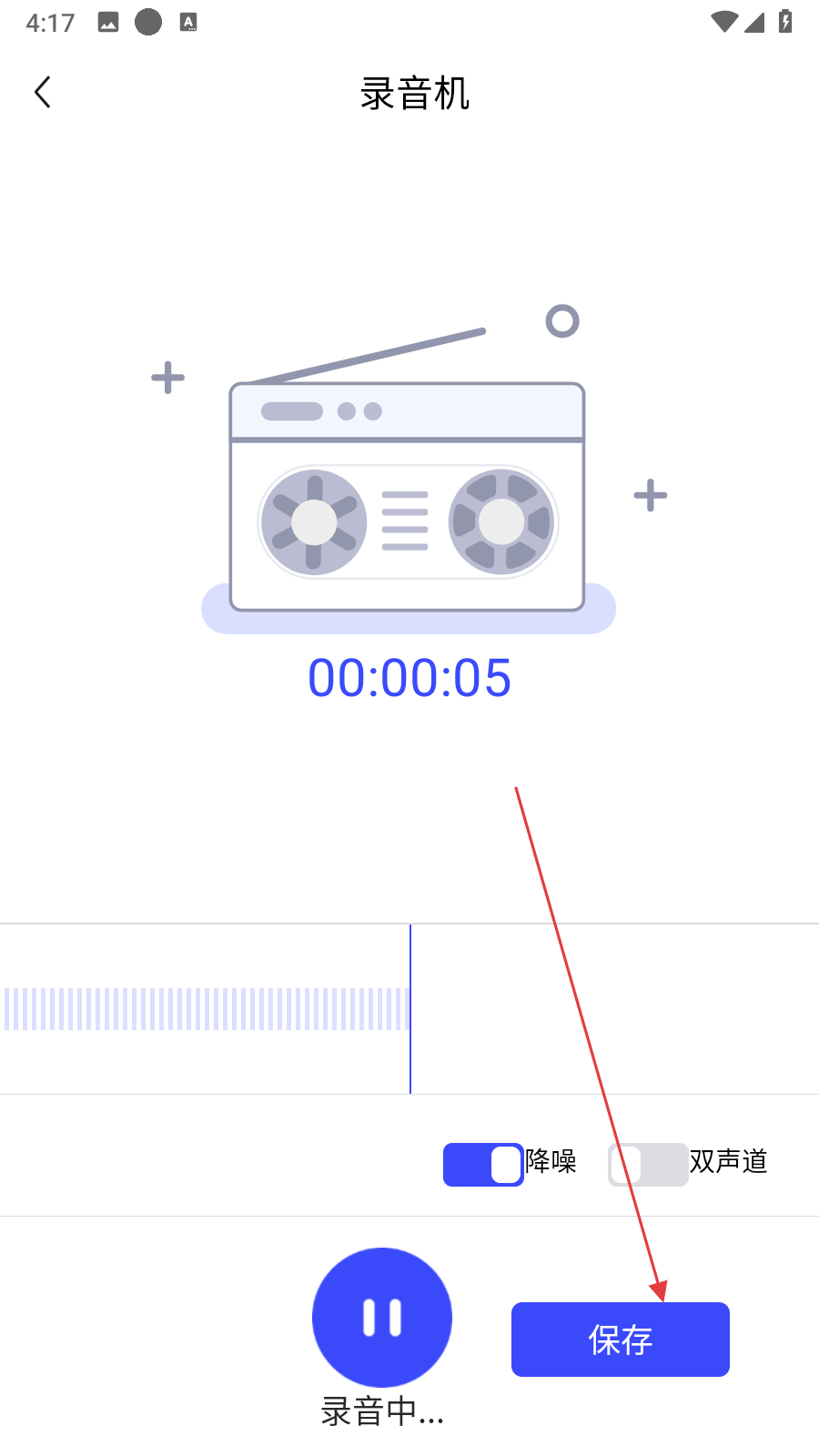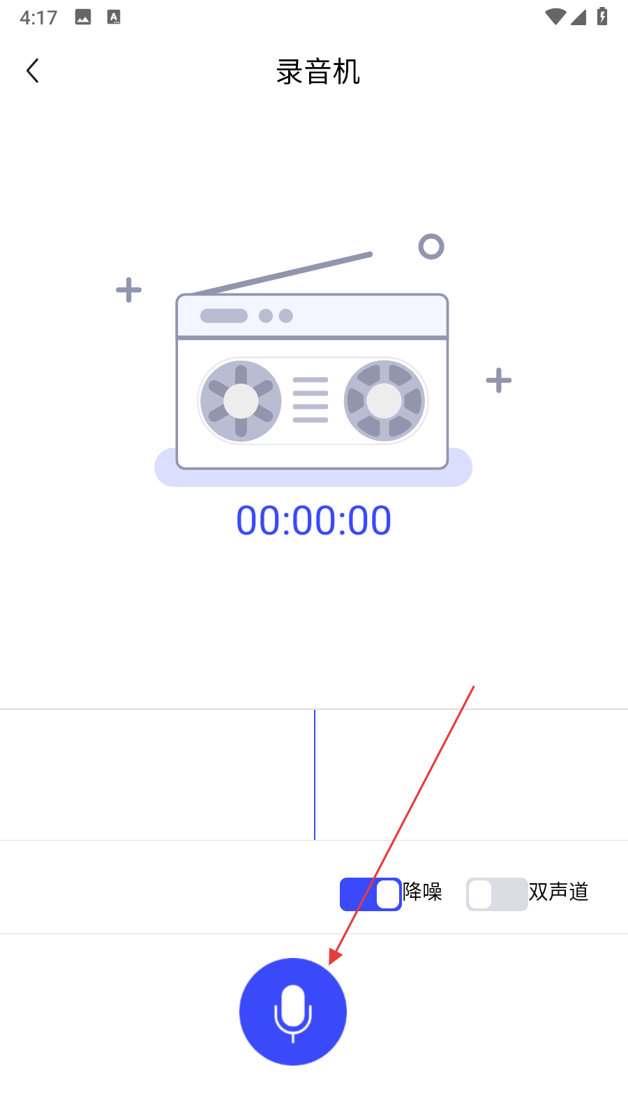 3、在录音机界面,点击底部带有麦克风图标的蓝色圆形按钮,开始录制音频。