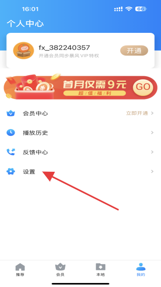 1、启动暴风影音APP,进入到主页,找到并点击我的图标。