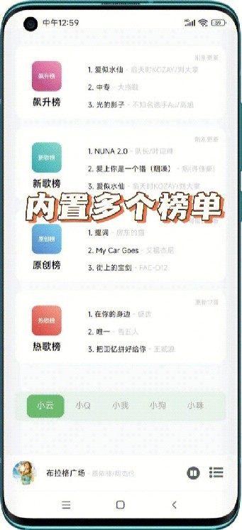 超齐全热门音乐排行榜,让你紧随音乐潮流。众多精品歌单可供选择,并且支持同步小yun和小Q歌单。
