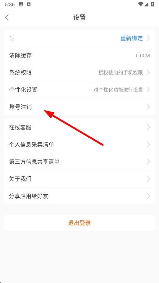3、在设置界面里,找到并点击账号注销选项,进入注销账号说明页面。