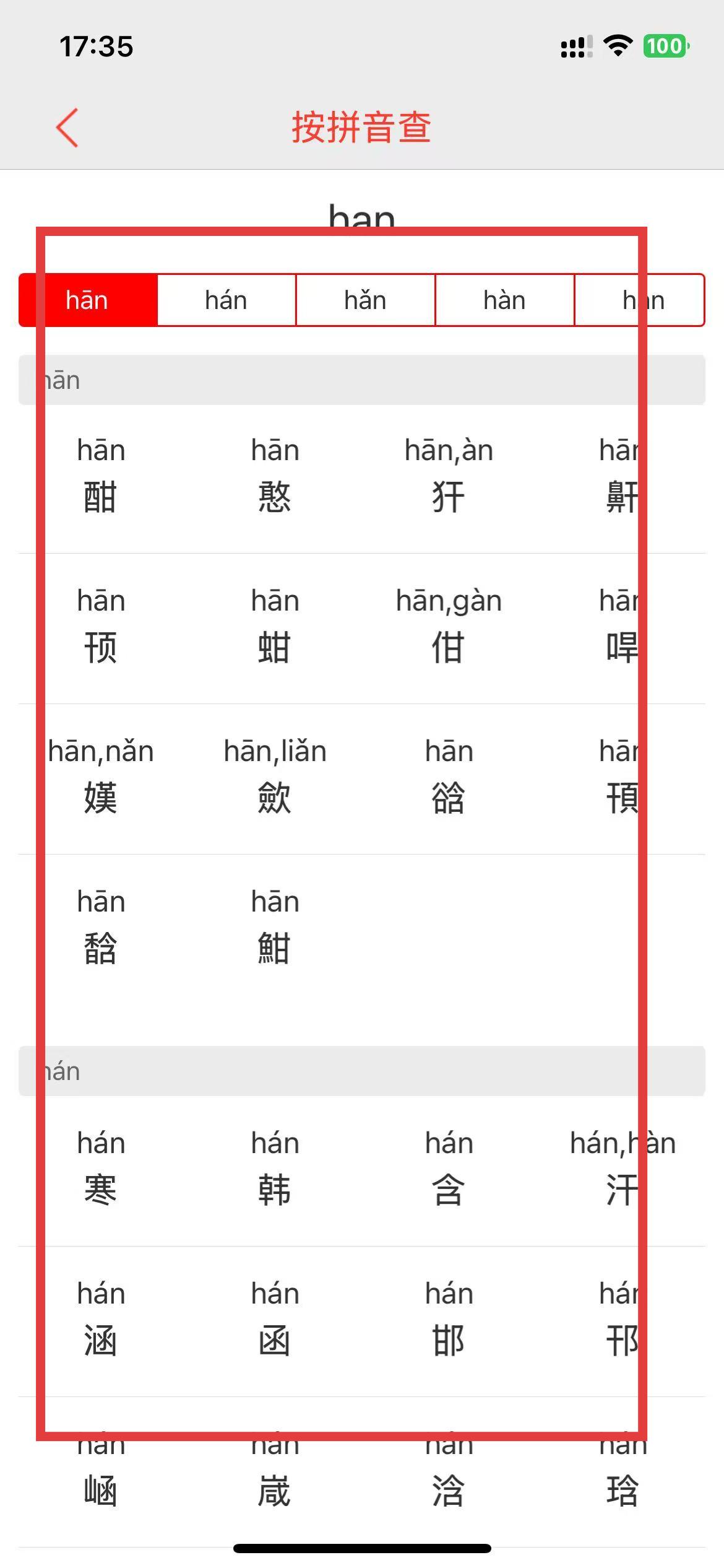 4、找到目标汉字对应的完整拼音,即可完成查字。