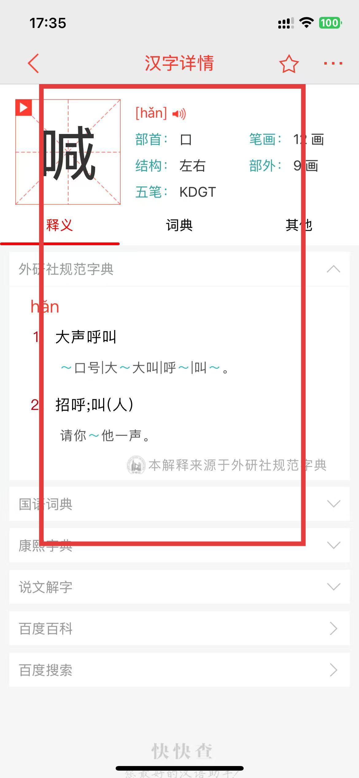 4、真人发音:常用字真人发音,当你掌上小老师的汉语字典;