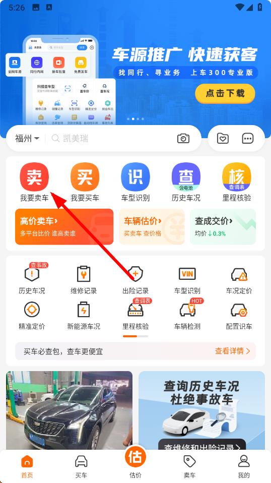 1、打开车300app,在首页点击我要卖车选项,进入卖车信息填写页面。